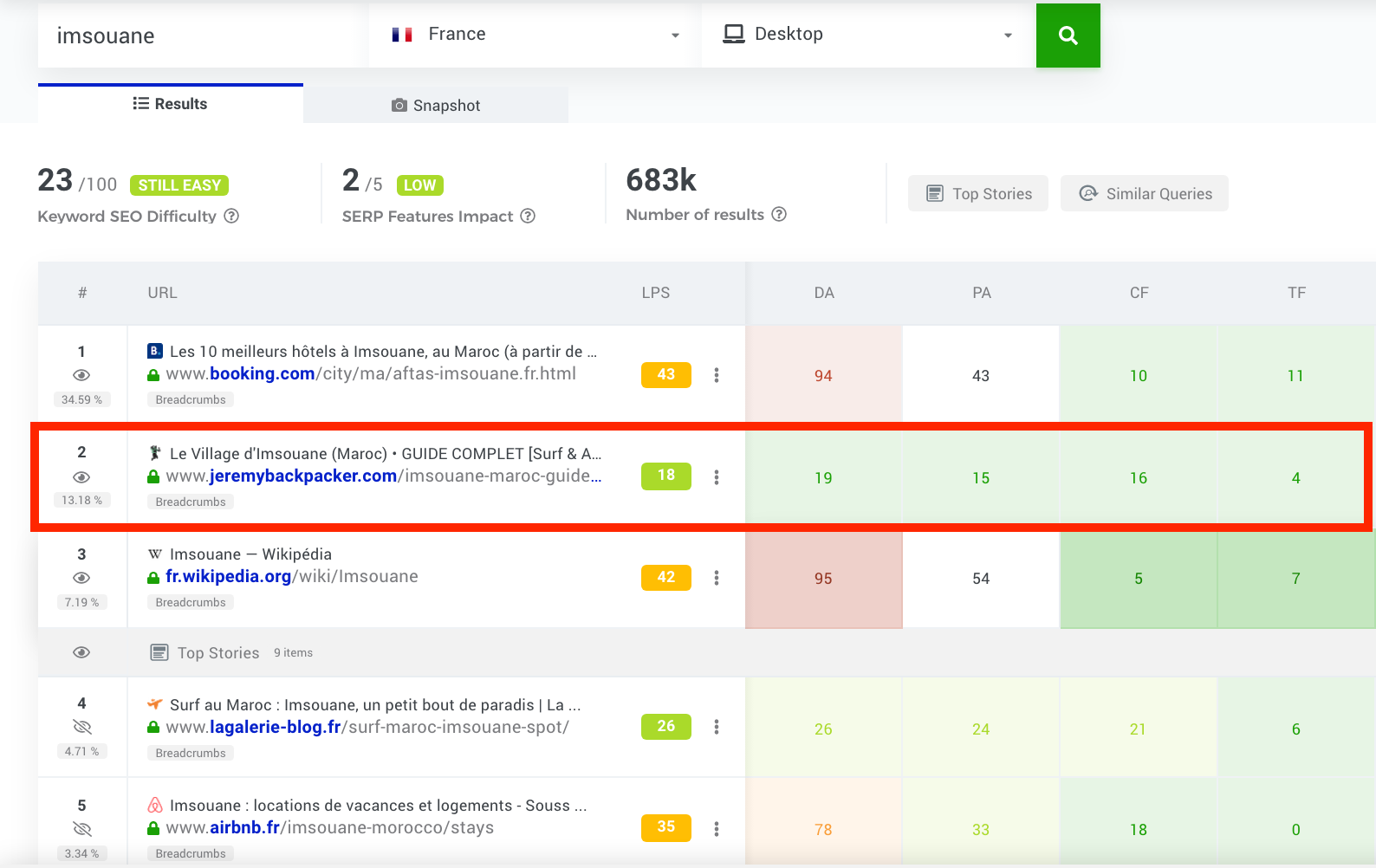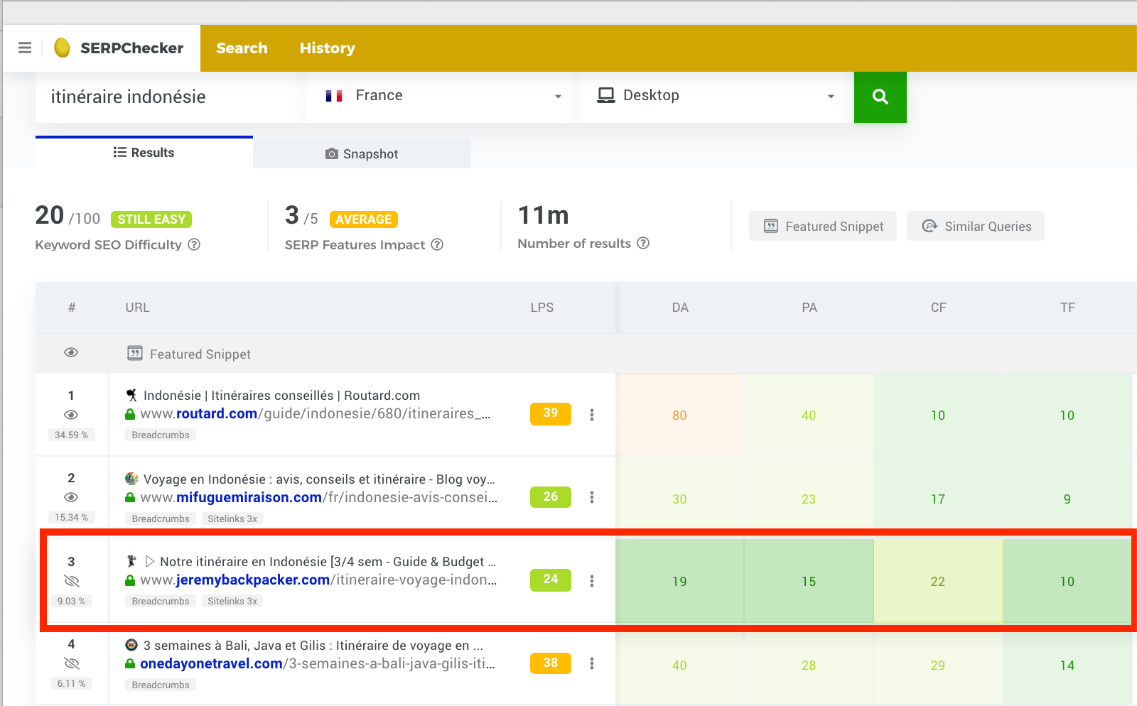 Tu pourras donc aussi voir que mes métriques (DA, PA etc. ) sont plus faibles que les blogs qui m'entourent.
