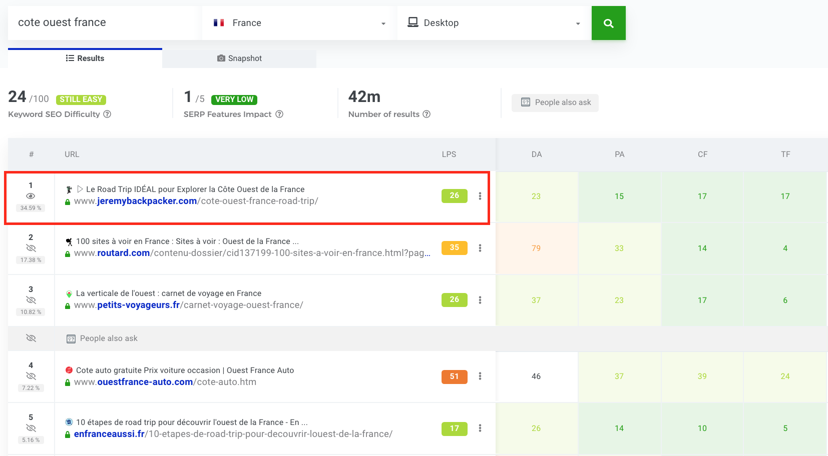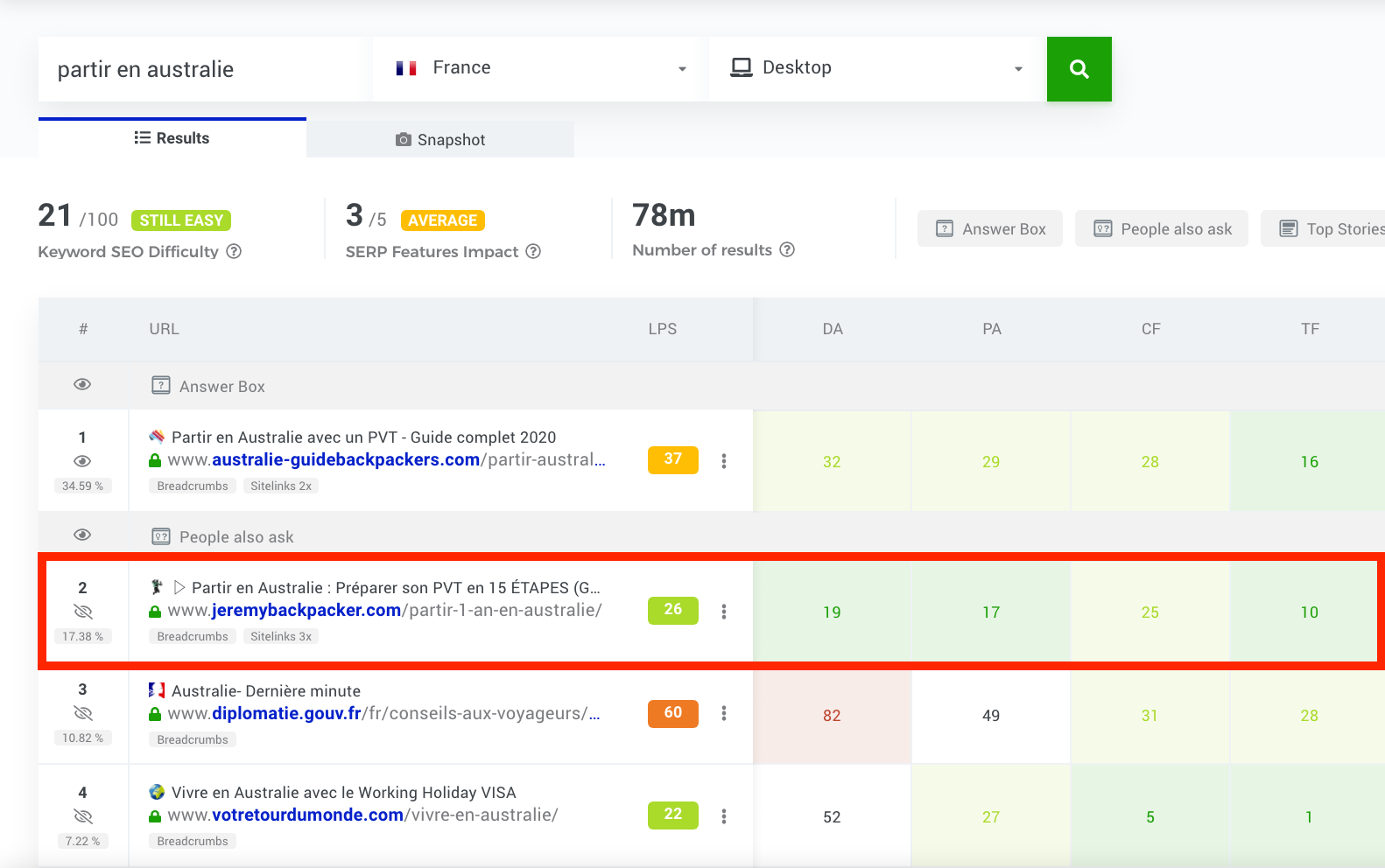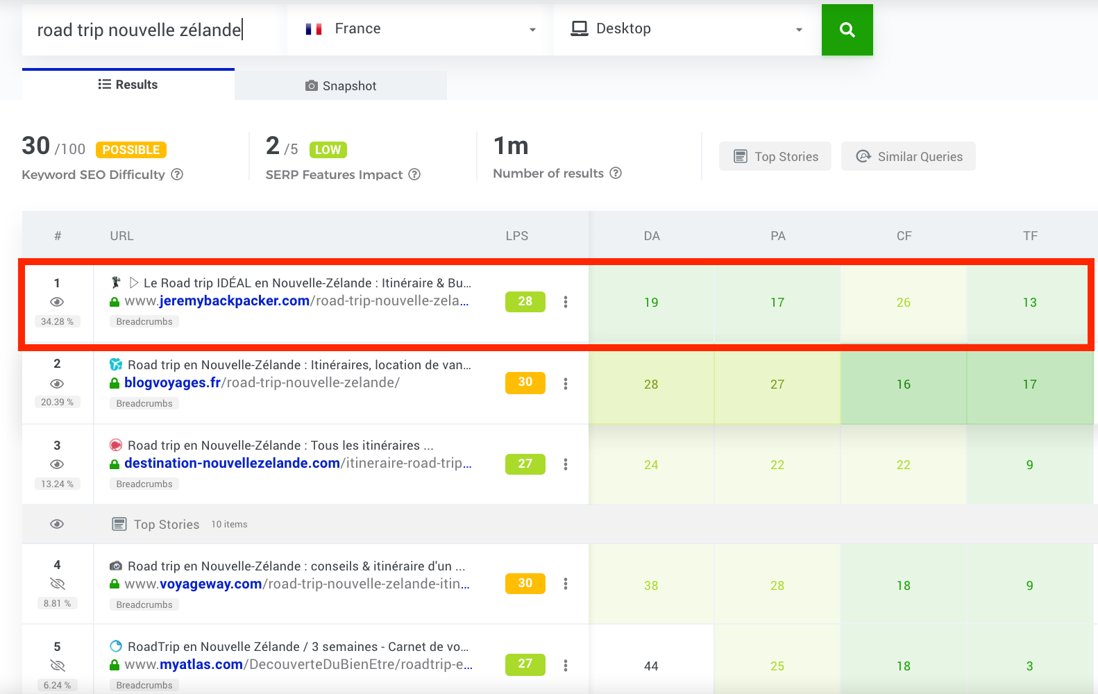 J'ai pris cette capture sur un outil d'analyse des résultats de recherche "neutre".