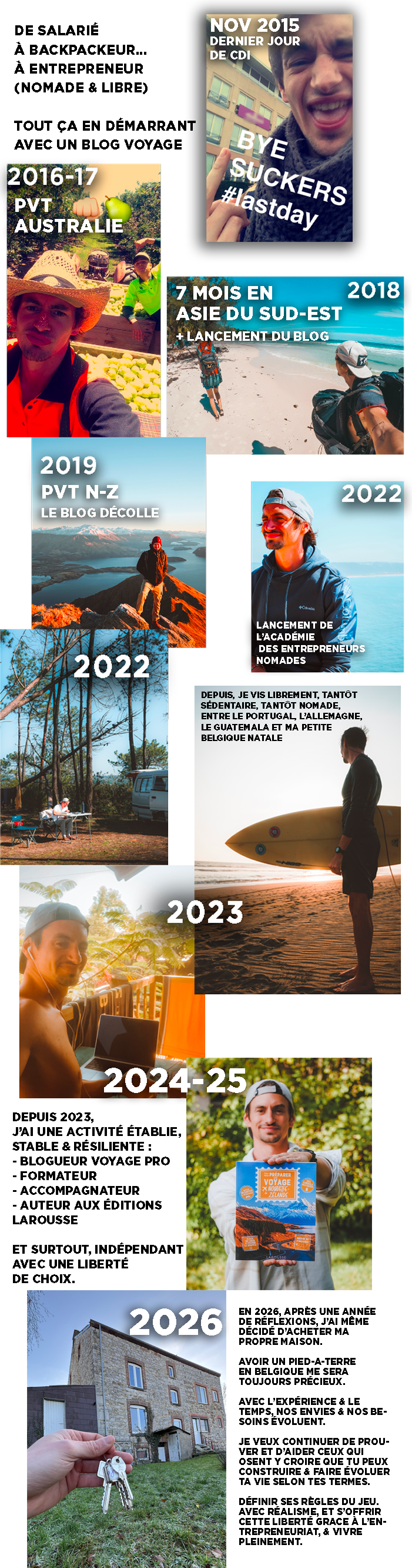 J'ai eu le bonheur de vivre de façon nomade, et indépendante, de 2019 à 2024 (vie en van, Portugal, Allemagne, Belgique, Guatemala)..