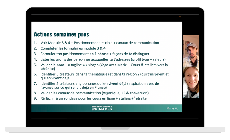 (Et là où les 2 mondes se combinent, c'est qu'à chaque fois que tu avances dans le programme, on s'appelle à des moments clés pour construire ensemble ton projet).
